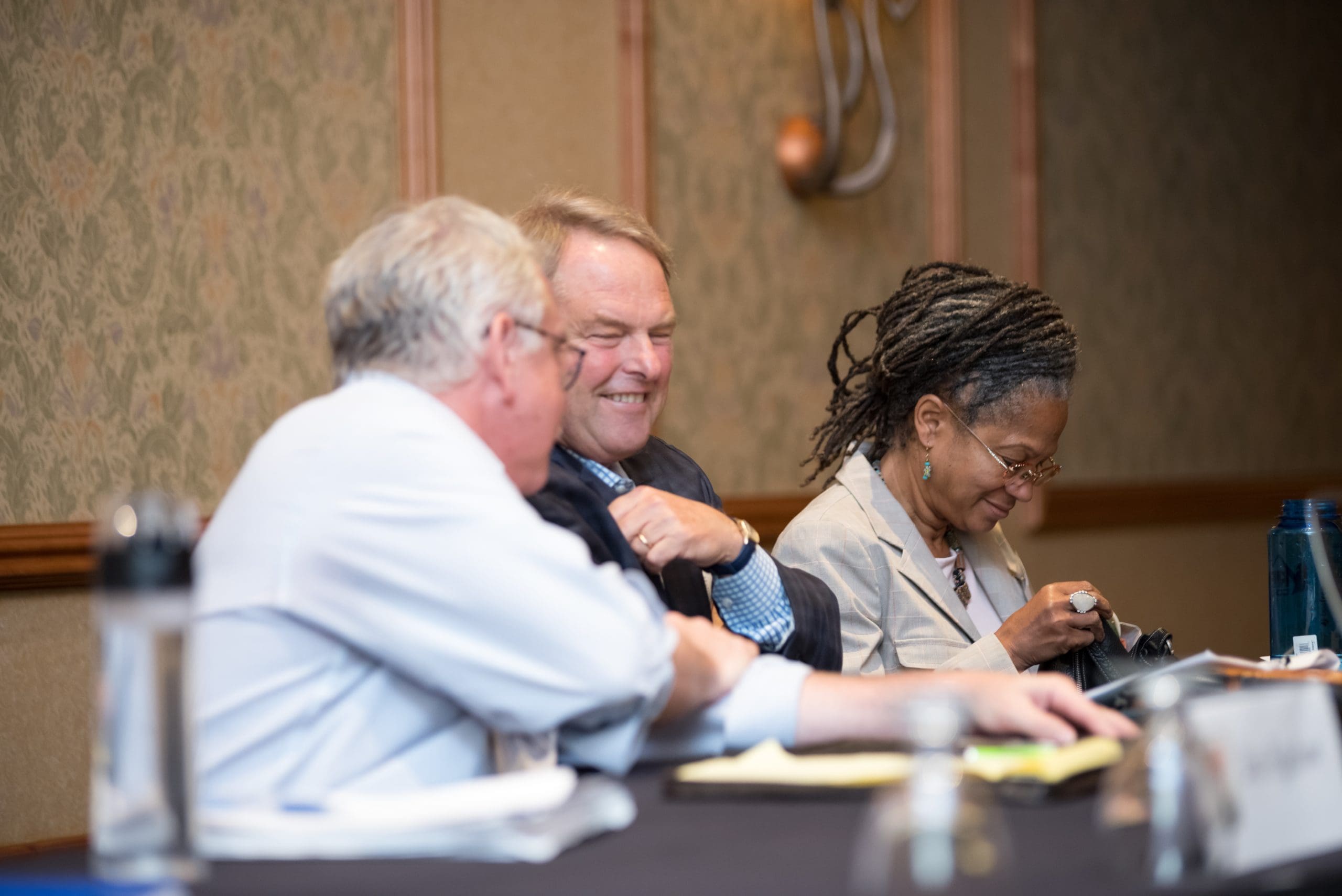 Plenary panel addresses a captive audience at the Racial Equity Challenges in Agricultural Land Tenure. Shirley Sherrod, Southwest Georgia Project, among the panelists.