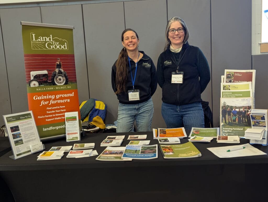 We also have the opportunity to engage all together in real time group conversation about tough issues during and after sessions. I find this to be true each year when we are talking about the ongoing challenges of farmland affordability, whether it’s in the context of access, long term tenure, ownership, or transfer. While we are presenting workshops, we often talk about tools that may be used to access land or to make land more affordable. This year Land For Good facilitated a panel discussion about alternative models of farmland purchase and ownership. Panelists included Farmland Commons, Equity Trust, and Kitchen Garden Farm. They each shared unique models for equity building and farmland ownership. I teamed up with Center for Mediation Rhode Island and Land & Sea Together to offer a lease clinic, reviewing the important components of the lease document, and communication and negotiation skills. Finally I offered a session for the younger generation farmers, like a group conversation on farm succession planning and resources. It was great to make space for farmers to share and hear from peers about their experiences.