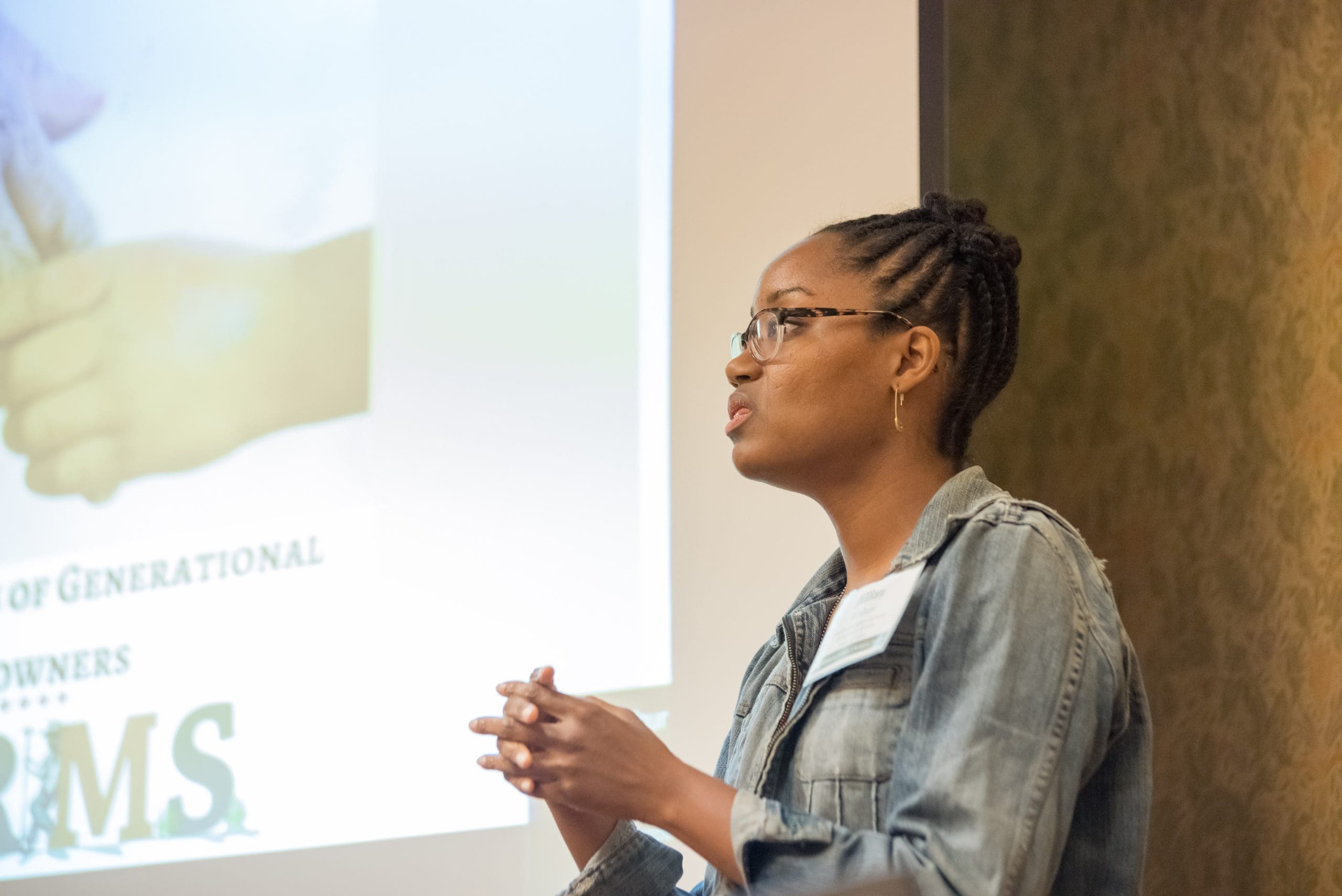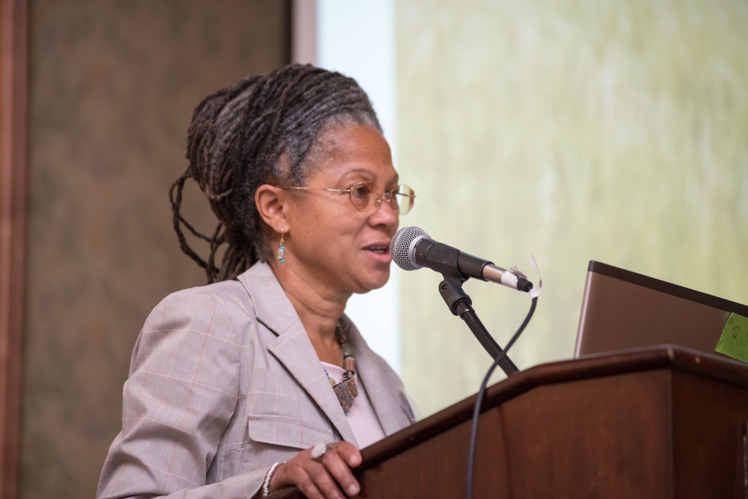 Monica Rainge, Federation of Southern Cooperatives, speaks to a full house at the Addressing Systemic Prejudice workshop.
