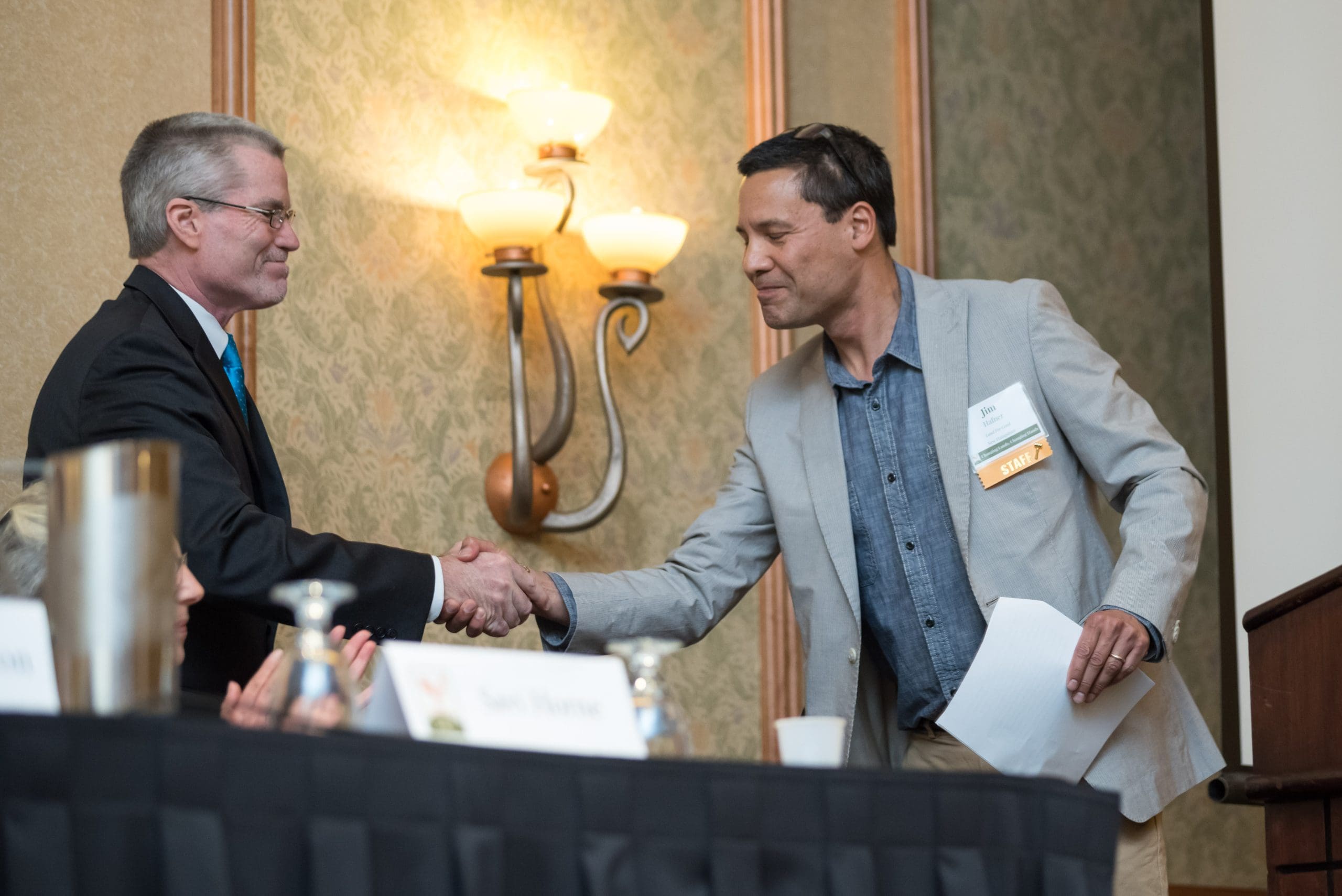 Jim Hafner, Land For Good’s Executive Director, welcomes Chris Beyerhelm, Acting Administrator, Farm Service Agency, U.S. Department of Agriculture. Photo Credit: Broken Banjo Photography