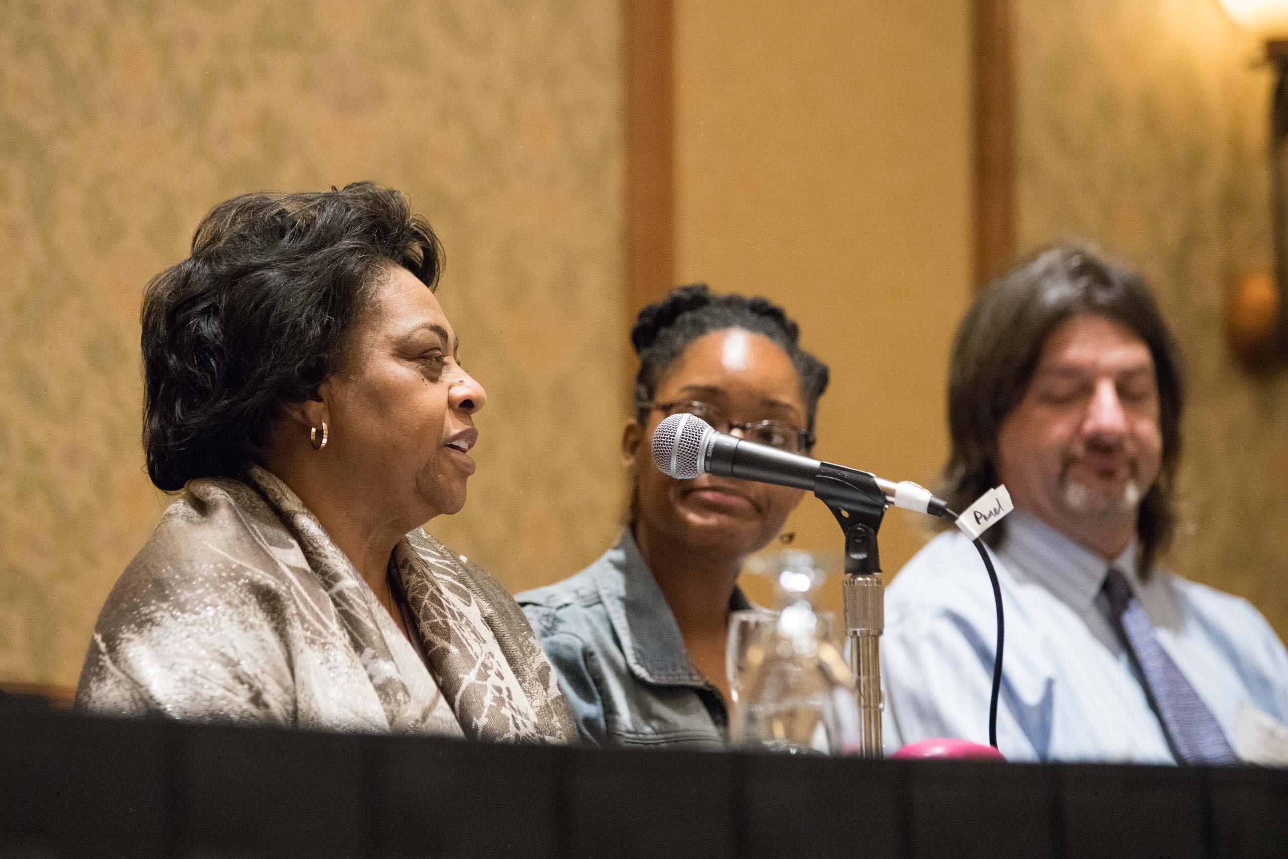 Plenary panel addresses a captive audience at the Racial Equity Challenges in Agricultural Land Tenure. Shirley Sherrod, Southwest Georgia Project, among the panelists.
